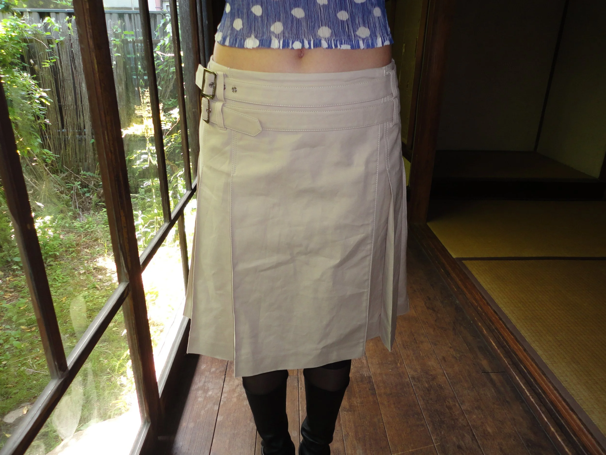 Burberry Beige Pleated Wrap Skirt